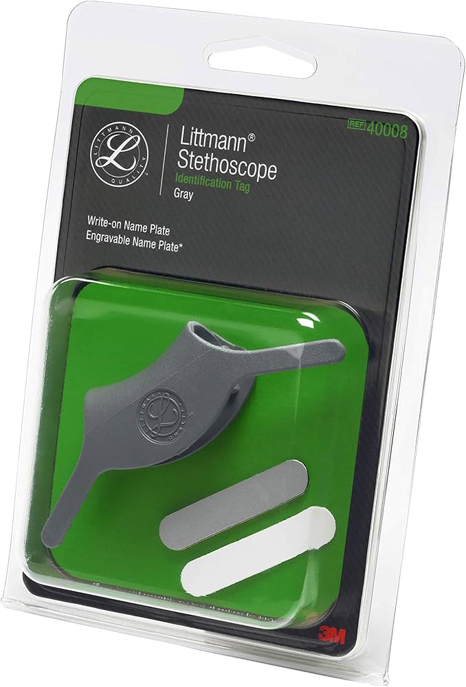 El tag de identificación para estetoscopios Littmann de 3M está diseñado para brindar una forma práctica y segura de personalizar tu estetoscopio. Fabricado en material resistente y de fácil instalación, este tag se ajusta perfectamente al tubo del estetoscopio y cuenta con dos placas de escritura (una blanca y otra gris) para marcar tu nombre, especialidad o unidad médica. Su diseño discreto y profesional asegura visibilidad sin interferir con el uso del estetoscopio, ideal para hospitales, clínicas y entornos de alto flujo donde la identificación es clave. Este accesorio es compatible con la mayoría de los modelos Littmann, y es una solución confiable para evitar extravíos o confusiones entre equipos.